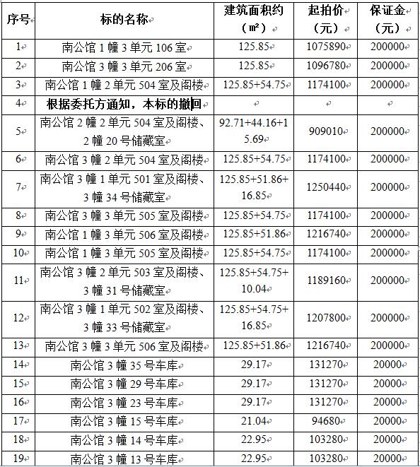 一、拍卖标的:位于德清县南公馆13套住房及一批车库、储藏室的拍卖,详见下表: